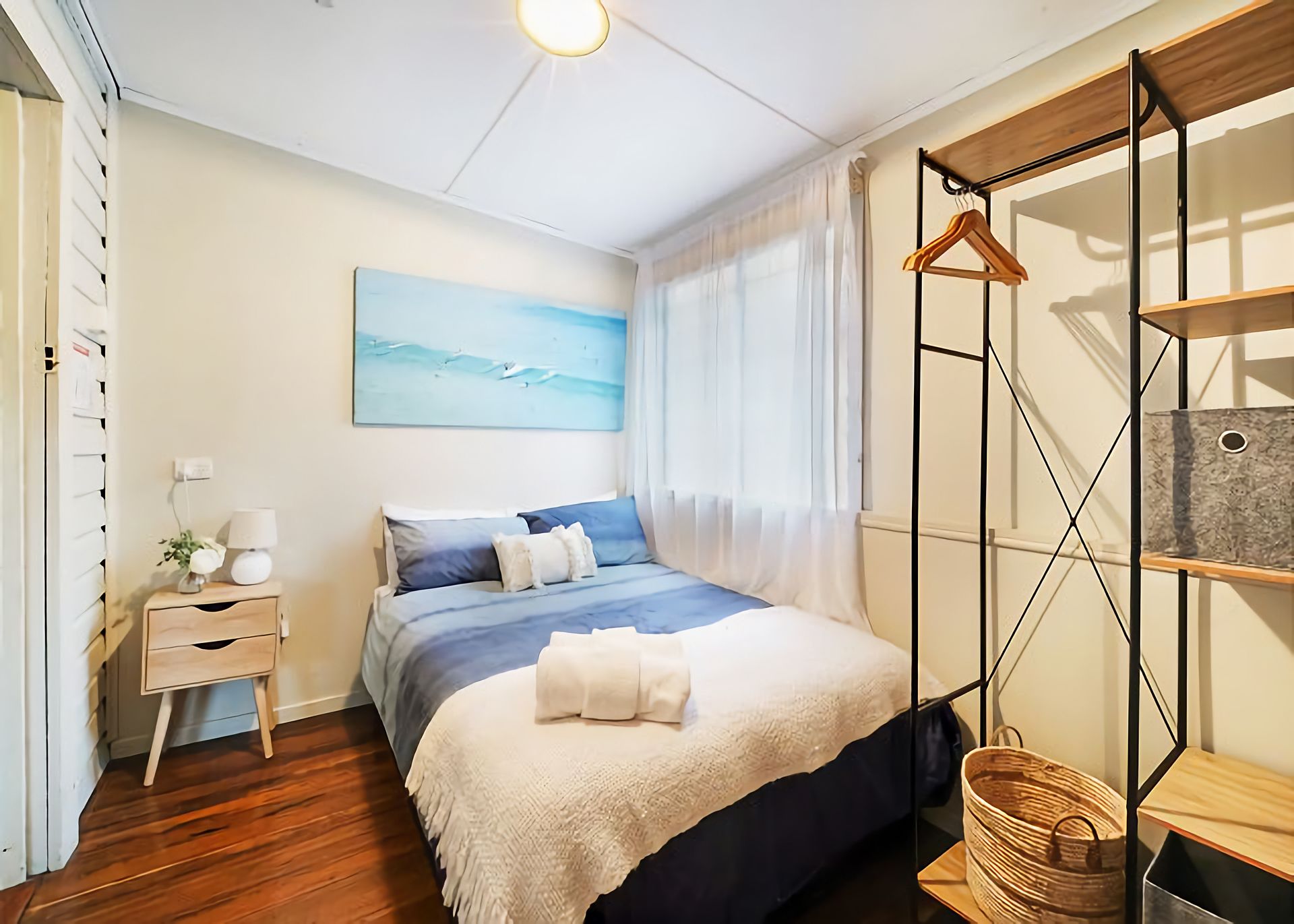 Second bedroom: Double bed with hanging rack