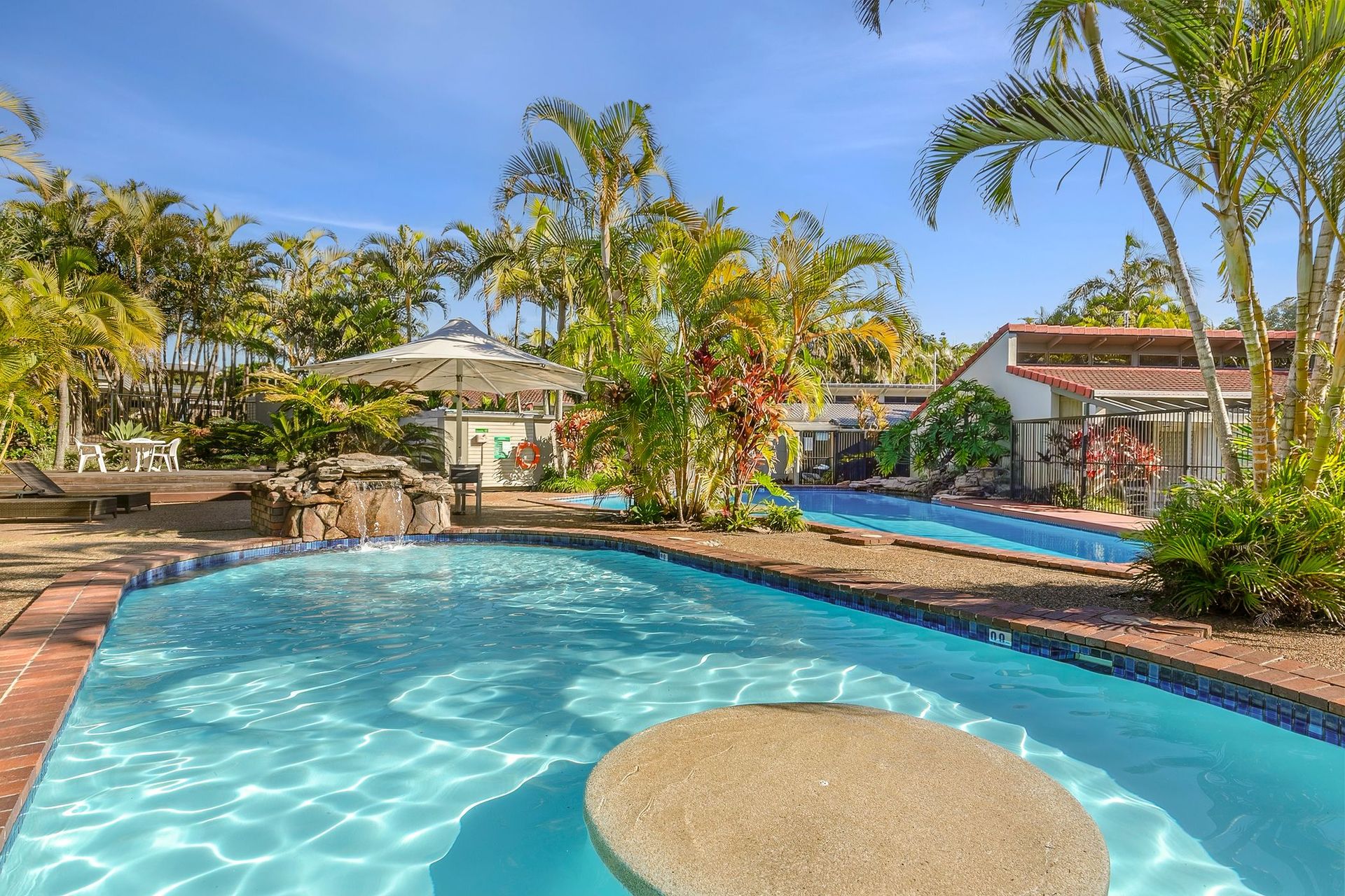 Lush tropical gardens with winding walking tracks for moments of serenity