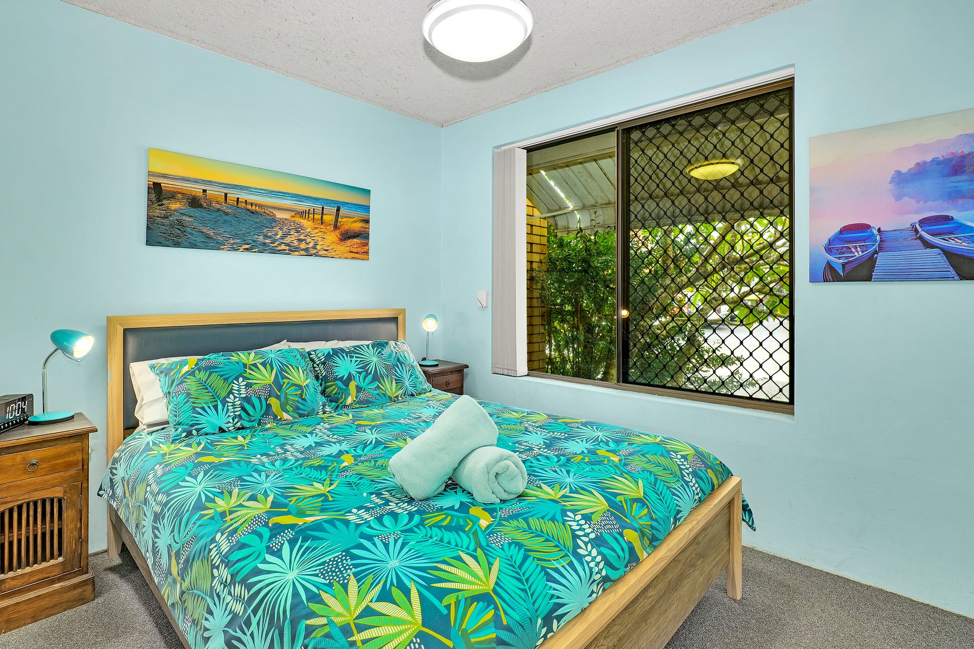 Main Bedroom: Queen bed, ceiling fan and built-in robes
